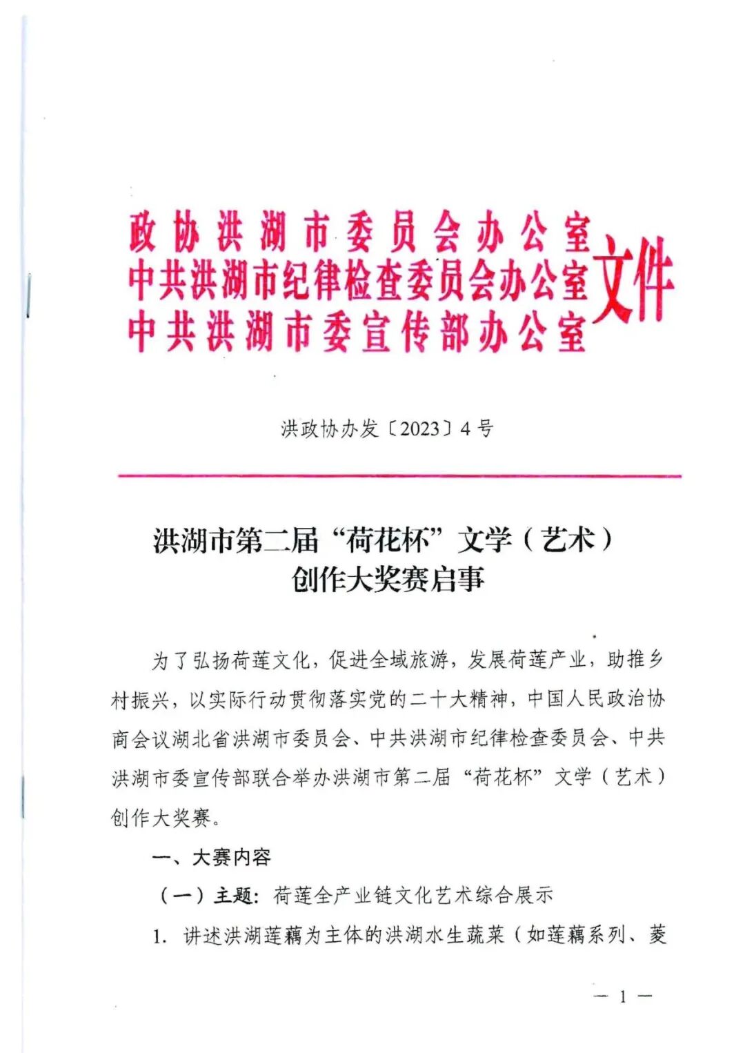 热烈祝贺洪湖市第二届“荷花杯”文学(艺术)创作大奖赛今天隆重启动啦!!!热烈庆贺《荷莲部落》微信公众号被指定为大奖赛“入围作品”独家发布平台!!!