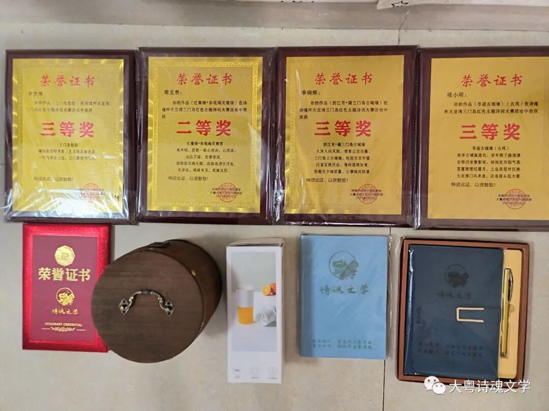 一二三等奖颁发实物金牌证书、诗集一本和诗魂文学纪念品一份(即日起安排邮寄),优秀奖和诗星奖颁发电子荣誉证书(获奖者可自行下载收藏证书,需要实物证书邮费自理)。