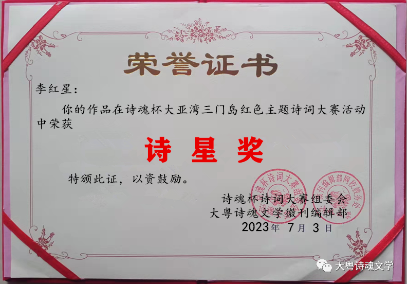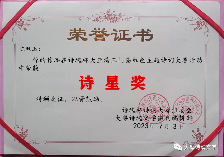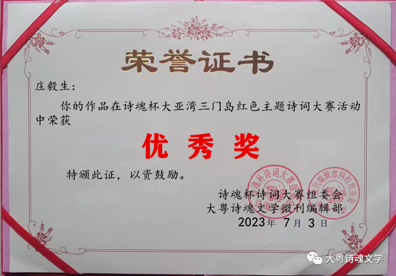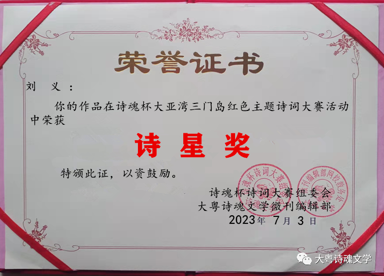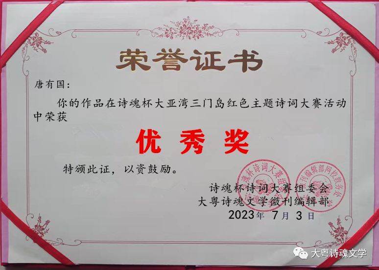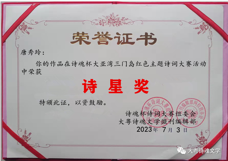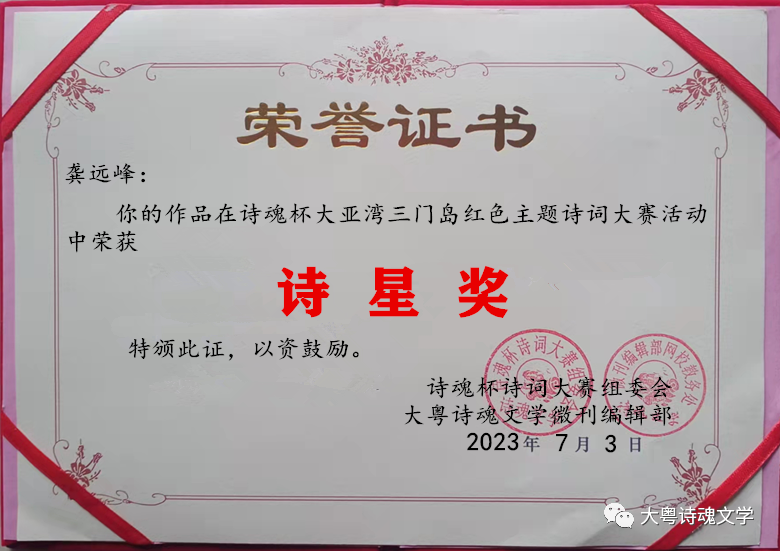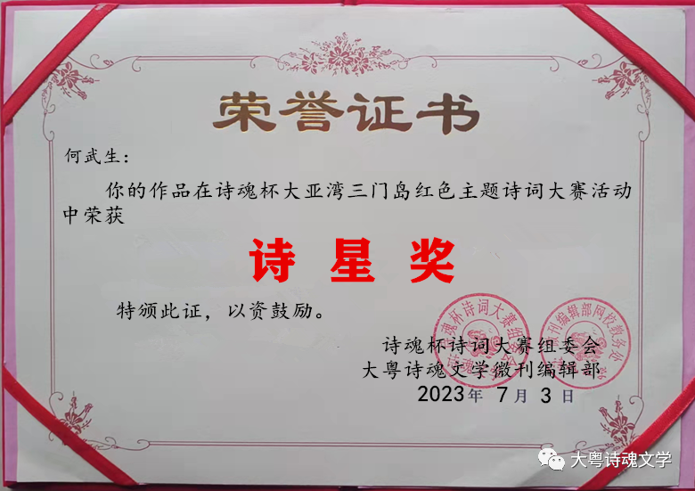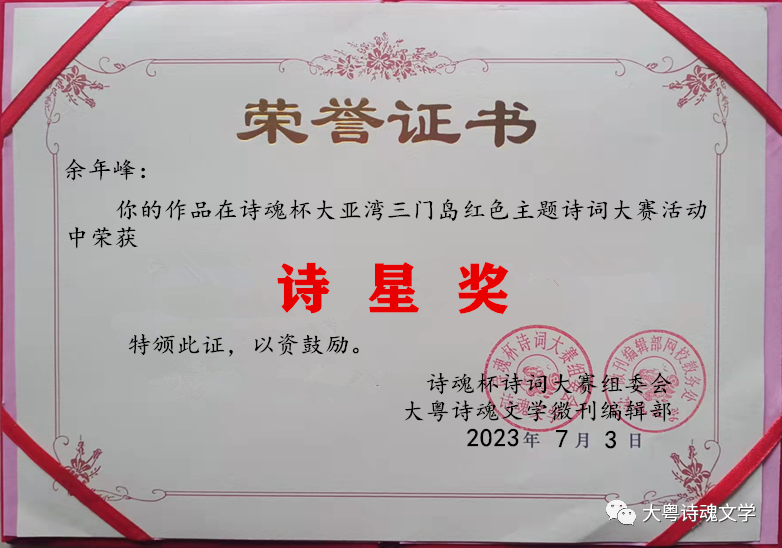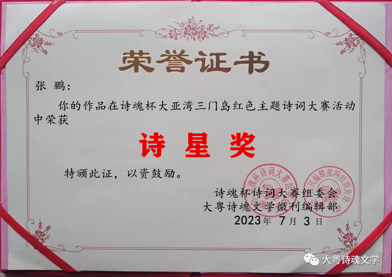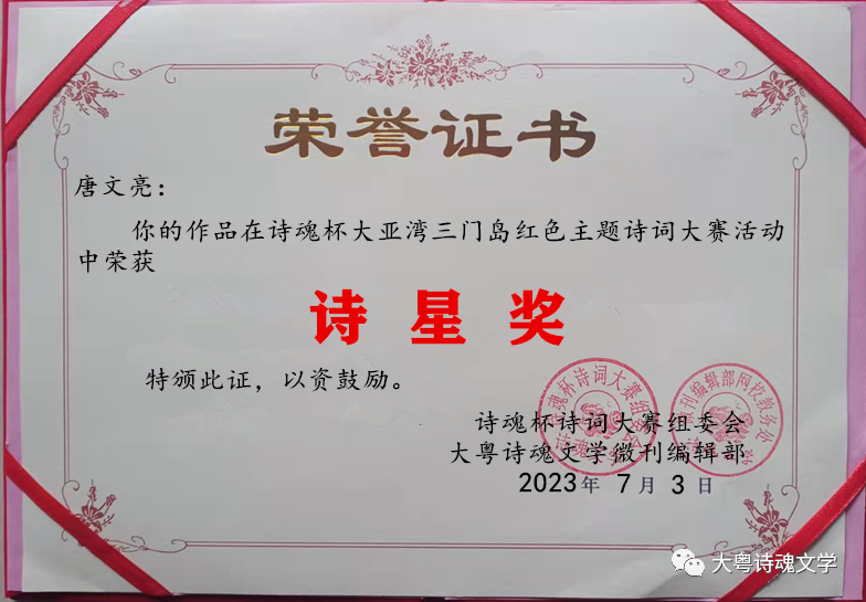 诗魂杯诗词大赛组委会 大粤诗魂文学微刊编辑部 2023年7月3