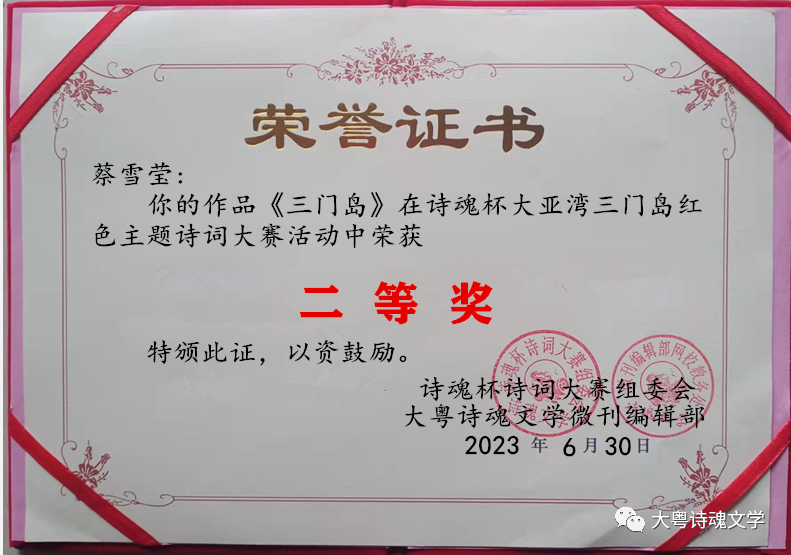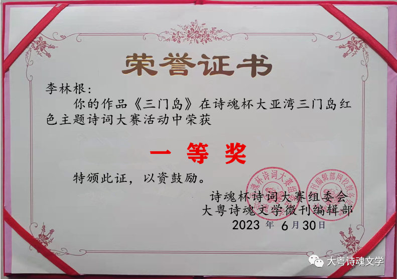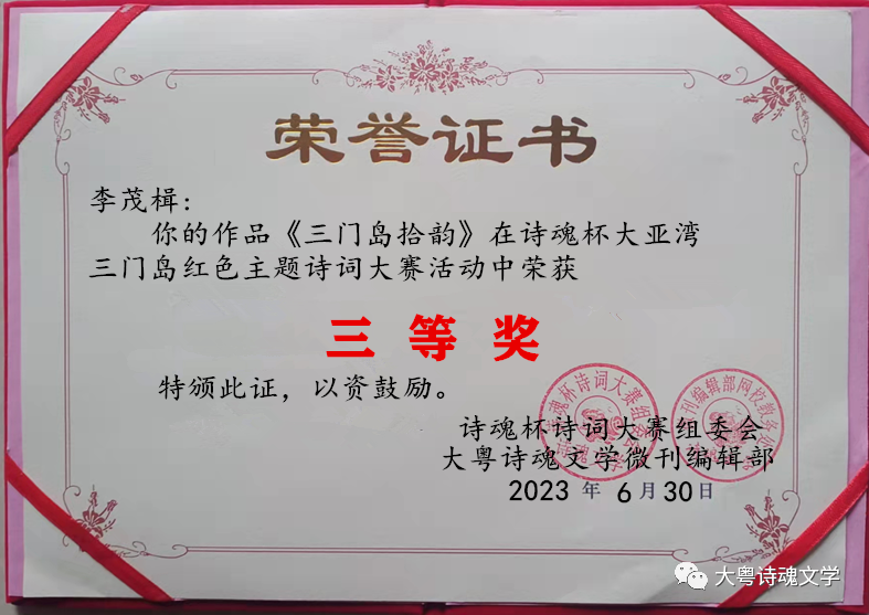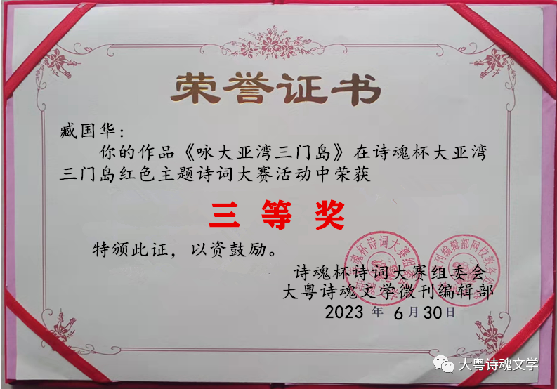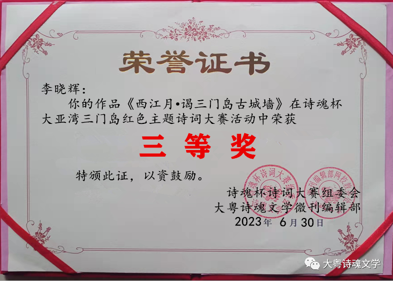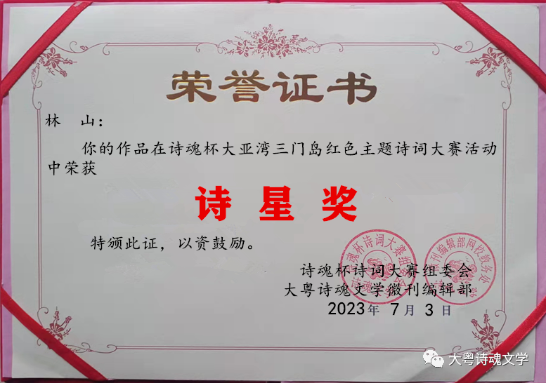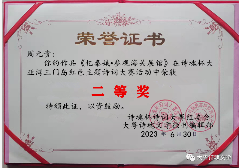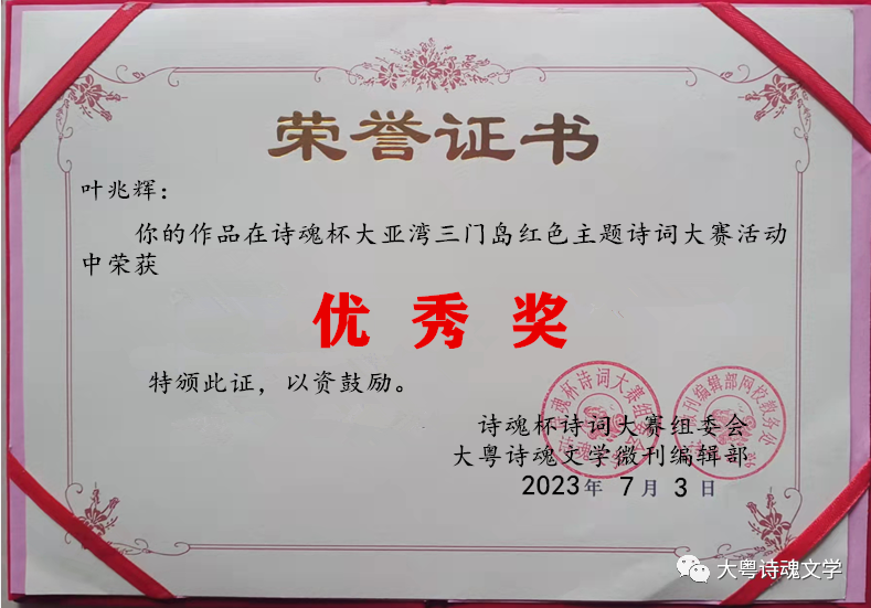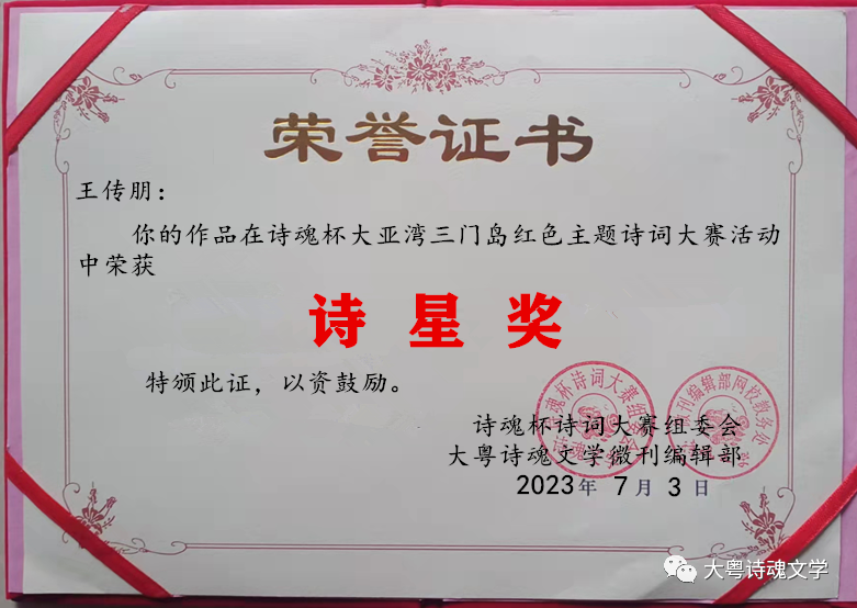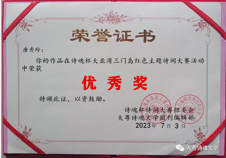 诗魂杯诗词大赛组委会 大粤诗魂文学微刊编辑部 2023年7月3