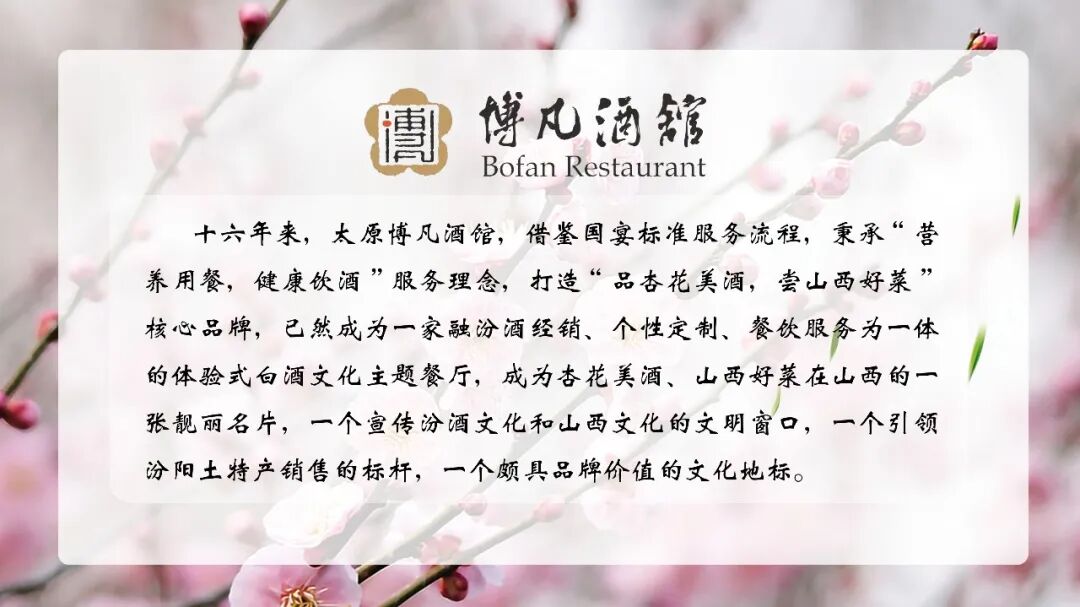 为弘扬中华传统诗词文化,展现当代女性文学创作风采,挖掘山西美酒美食诗酒文化内涵,由中华诗词学会女工委、山西诗词学会作为指导单位,山西诗词学会女工委、山西杏花诗社、山西博凡老酒馆联合主办第三届女子诗词大赛,现面向海内外公开征稿。山西博凡老酒馆,是以“品杏花美酒、尝山西好菜”为主题的酒文化餐厅。董事长、山西杏花诗社副社长张凡,带领团队创业十六年来,大力弘扬山西美食、杏花村汾酒文化,从酒馆形象、酒品展示、餐厅装饰、酒签设计、餐具制作、美食搭配等多方面体现了山西美食、美酒文化的魅力。
