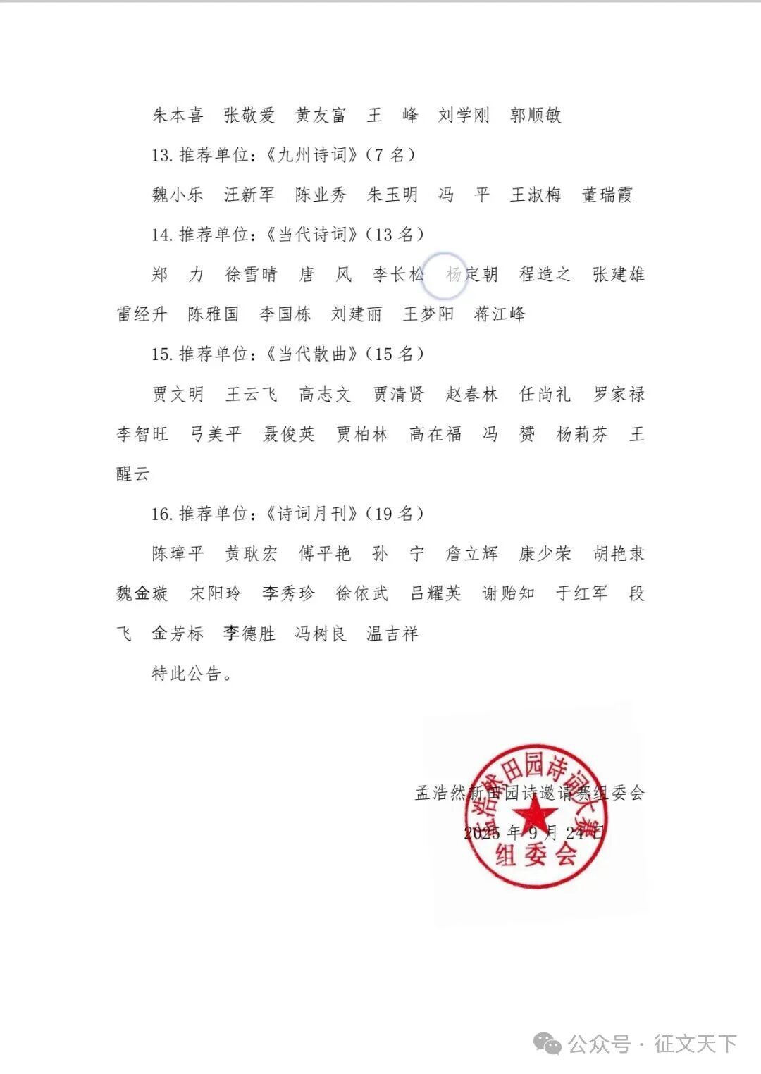 孟浩然新田园诗邀请赛组委会 2025年9月24日