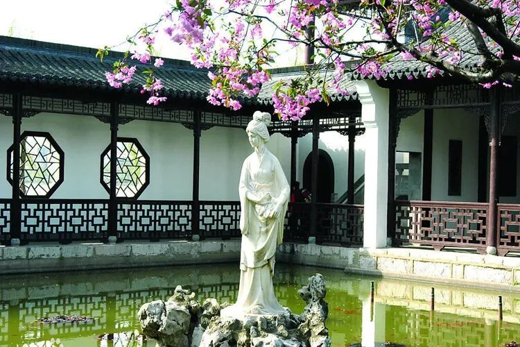 徜徉于莫愁湖畔,最令人流连的当属寻觅莫愁女的芳踪了。南朝以来,莫愁姑娘故居就一直存在,只不过规模不大,且多次毁建。明洪武年间。徐达在胜棋楼西侧,重建了郁金堂、华严庵和水院长廊等建筑。整个四合院,便是莫愁女故居。水院的中心为赏荷轩。2.1米高的莫愁女雕像站立于水中间的一块岩石上,栩栩如生,好似临水的仙子,婷婷玉立,芳姿楚楚,神情淡定,不衰不老。每当夏日荷花盛开之时,名花倾城,美女倾城,相得益彰。八方来客,慕名而至,驻足观赏,心旷神怡。莫愁湖的名字,跟传说一样美。莫愁女的故事,流传着不同的版本,但无论故事怎么演绎,莫愁女始终是善良美丽的化身。也许,这就是莫愁女穿越古今的魅力所在。“莫愁湖边走,啊,春光满枝头,花儿含羞笑,碧水也温柔,莫愁女前留个影,江山秀美人风流,啊,莫愁,劝君莫忧愁……”,正如当年这首风靡全国的歌中所唱,莫愁,既是一种乐观的情怀,更是一种智慧的写照。