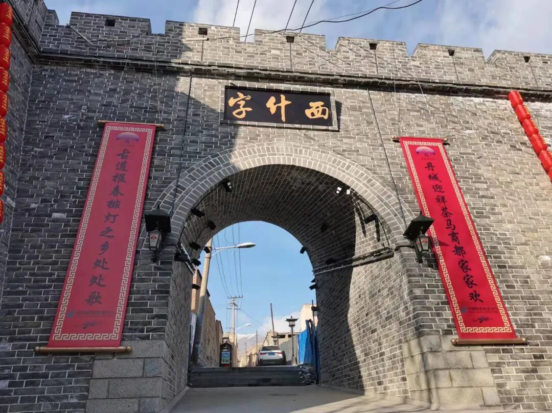 上联:旭日映红梅古城朝阳祝康泰 下联:春风拂绿柳喜鹊登枝报平安 西什字城门