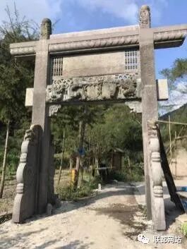 牌坊说明:入口牌坊位于亭溪岭古道南端的起点(海拔 68m),地处城杨村境内。该牌坊采用明代双柱单门形式,是一座用明、清两朝石雕构件重 组的石牌坊。它的满饰祥云纹的望柱 (或称牌坊柱头) 是明代的 遗物,中间匾额两侧的直格方窗,采用的也是明代的形制;但匾 额下雕有龙、凤、狮 (正面是狮子滚绣球,另一面是丹凤朝阳) 等吉祥图案的额坊和四片抱鼓石上的倒挂狮子,则是清代康乾盛世的老物件。这种把明代的简洁与清代的精致两相对照的重组方 法,使入口牌坊具有一种古朴优美的乡土艺术特色,不仅丰富了 亭溪岭古道的历史文化内涵,同时也提高了古道景观的艺术审美 价值。