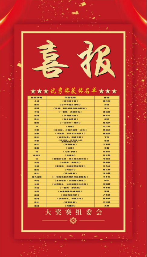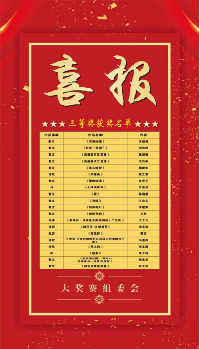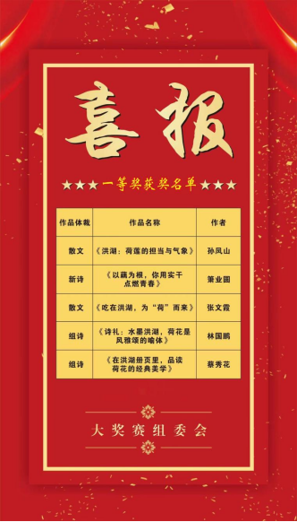[赛事揭晓] 洪湖市首届“荷花杯”文学创作大奖赛落下帷幕