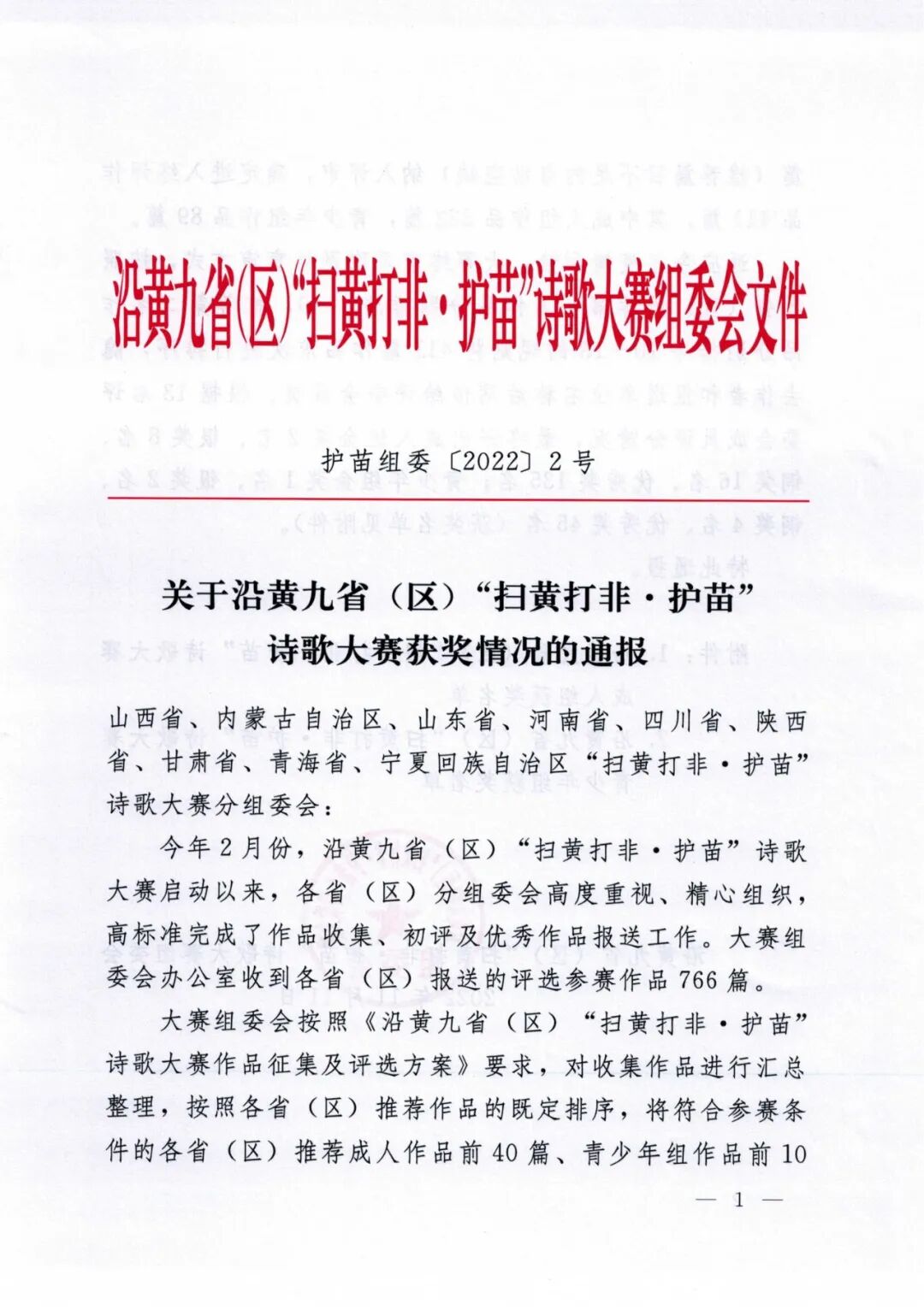 [赛事揭晓] 沿黄九省(区)“扫黄打非·护苗”诗歌大赛结果公布了!