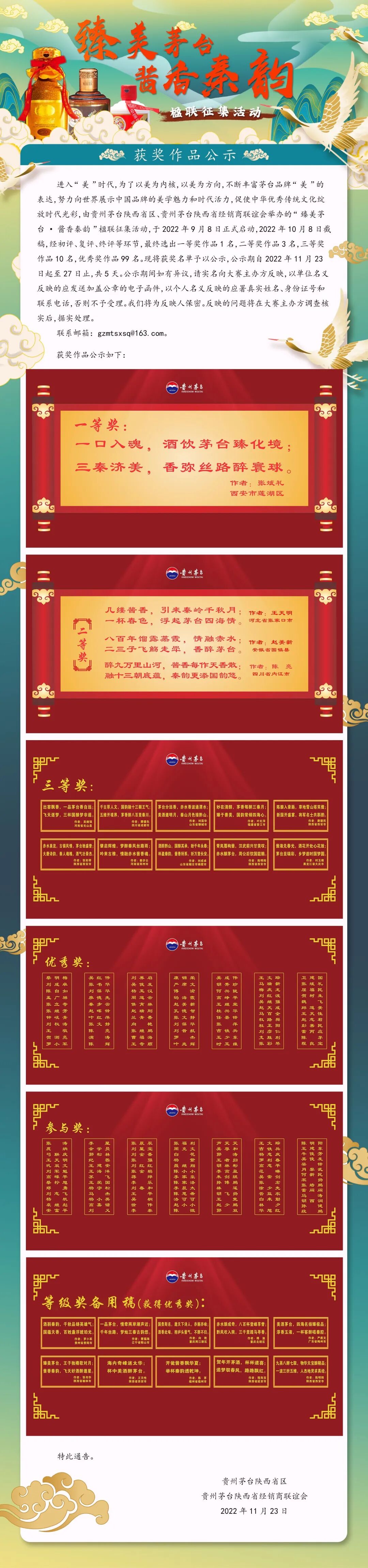 [赛事揭晓] 臻美茅台 酱香秦韵——楹联征集活动获奖作品公示